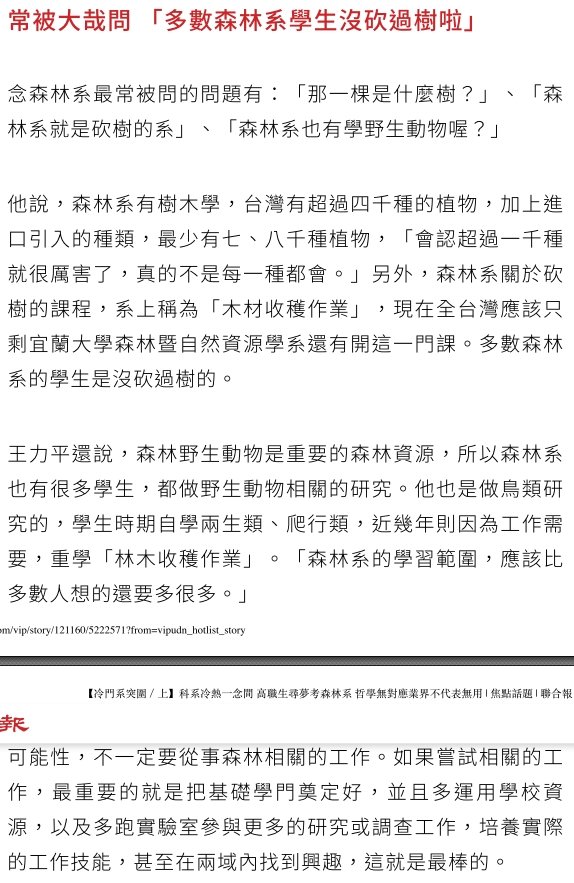 剛好也在今天的公司例行工作會報的場合,來了一位剛考完學測的高三生來徵詢選系與未來可能的就業方向。透過這位學生口中所敘述,不論是自己的認知或者是學校老師提供的資訊,都對森林系非常陌生,甚至有誤解。