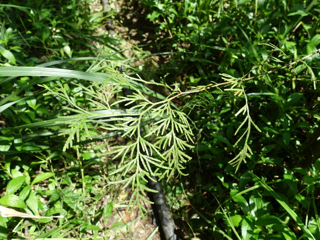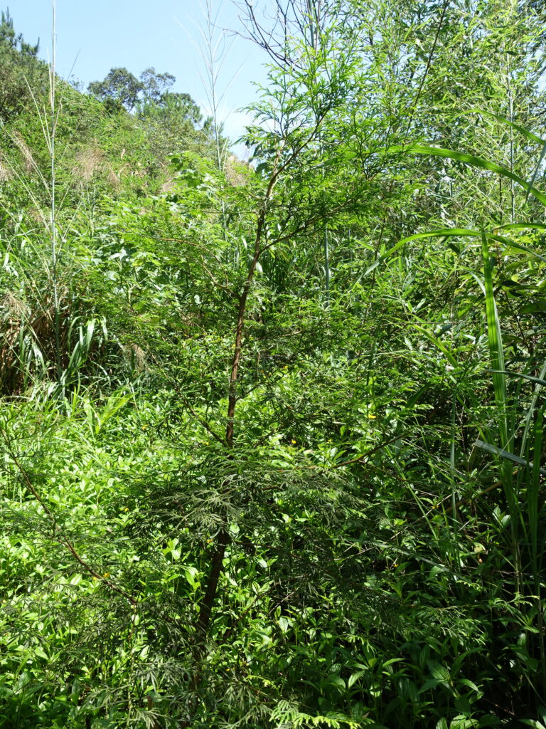 疏伐後的森林主要種植物種是肖楠,每棵被種植的植物旁都必須加上竹竿,以免小樹還沒長大前就被當作雜草除掉了!
