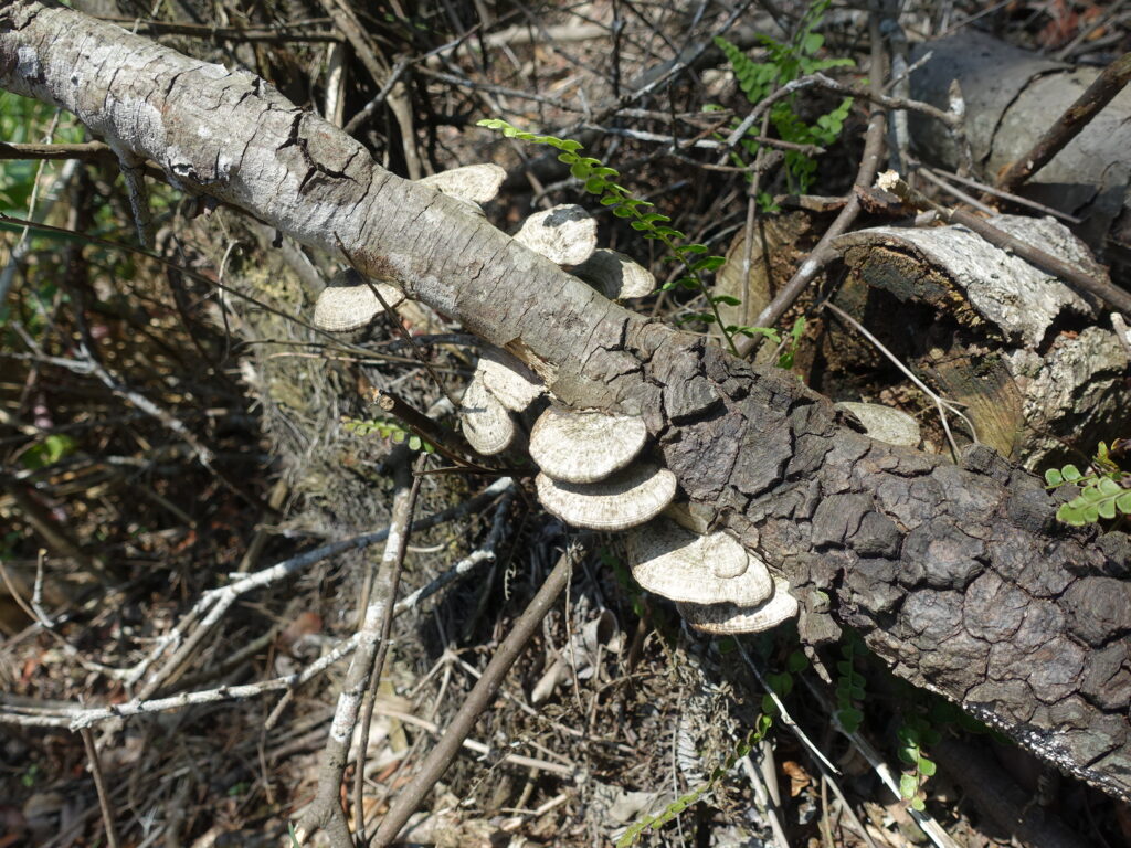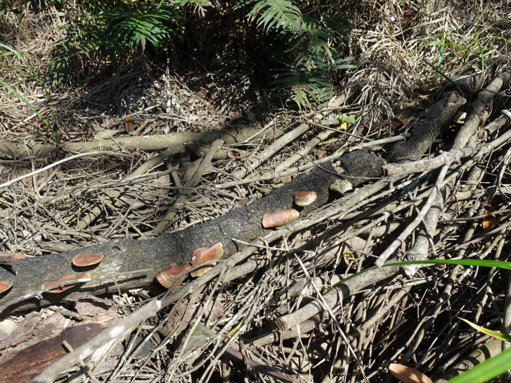 砍下的木頭堆放在造林地周邊,不僅成為真菌生長的棲所,經由細菌或真菌分解之後也能成為土地的養分。