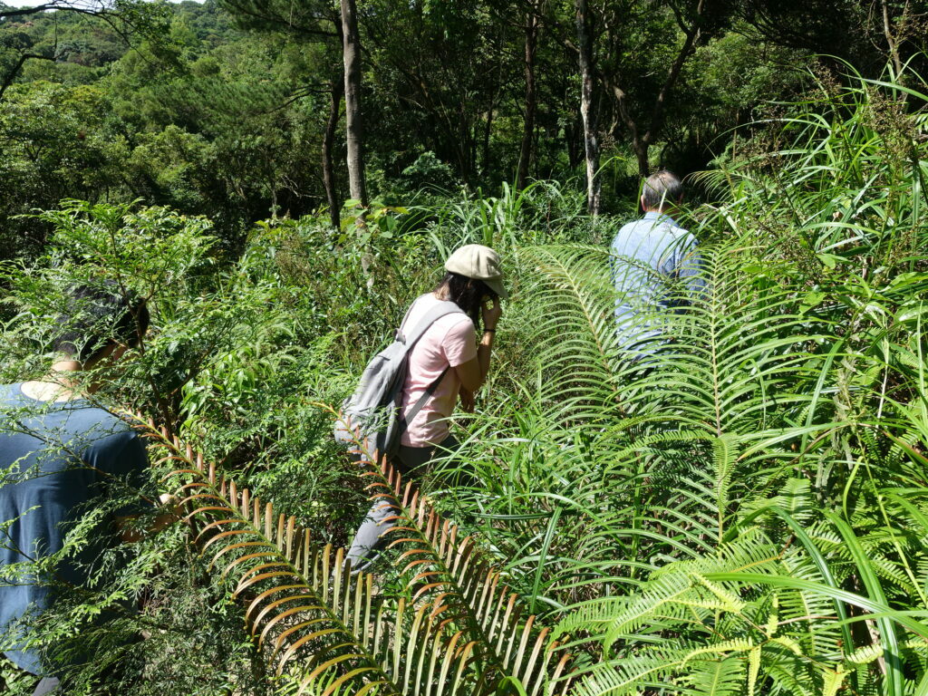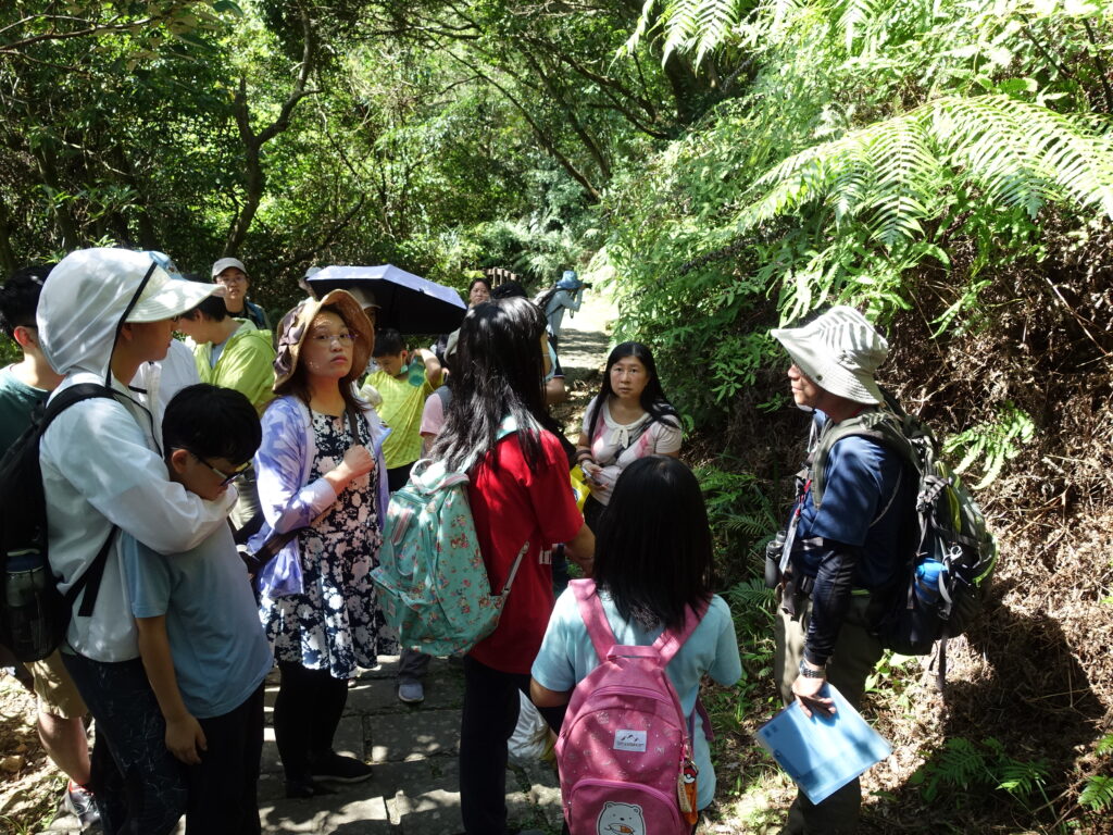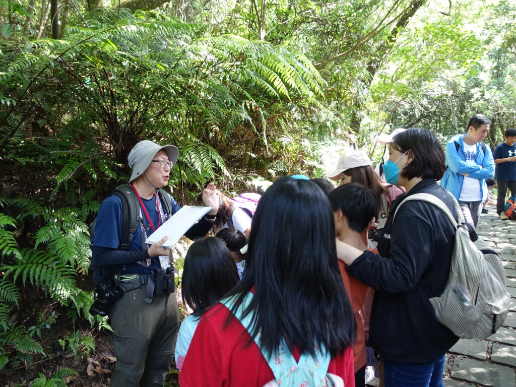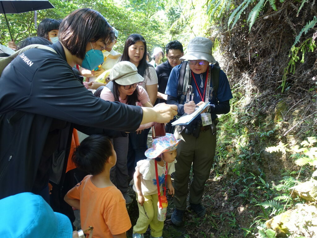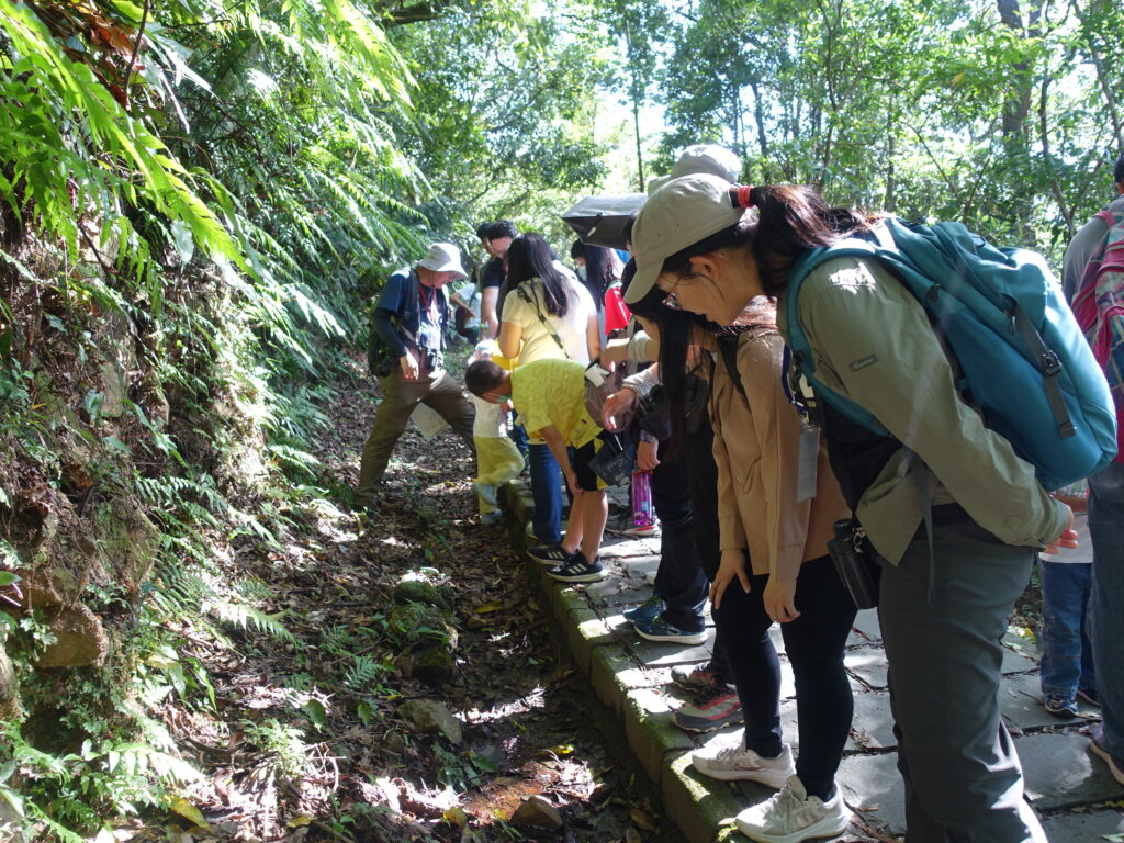 步道系統鬱閉許多,大家聽著老刀從天上介紹到地上,從植物介紹到動物,連旁邊的水溝也不放過!