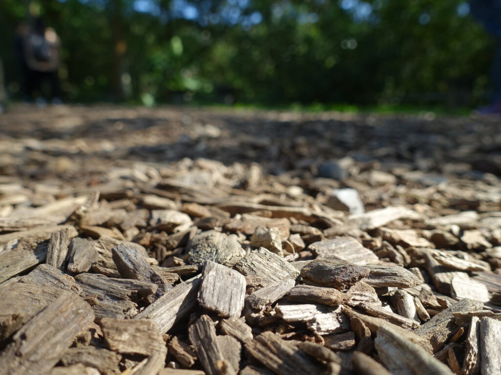 如果下次大家有機會到這裡,可以走走看涼亭前面用砍伐下來的碎木材鋪成的地毯,感受木材的韌性與彈性。