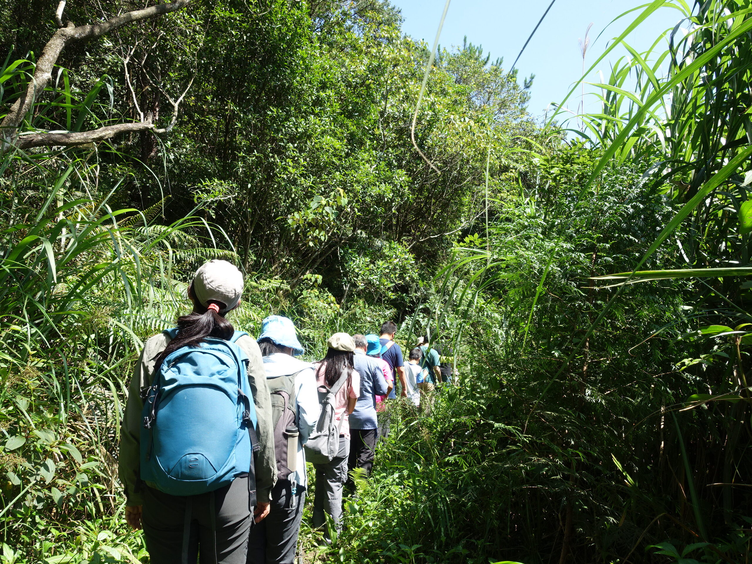 步道系統鬱閉許多,大家聽著老刀從天上介紹到地上,從植物介紹到動物,連旁邊的水溝也不放過!