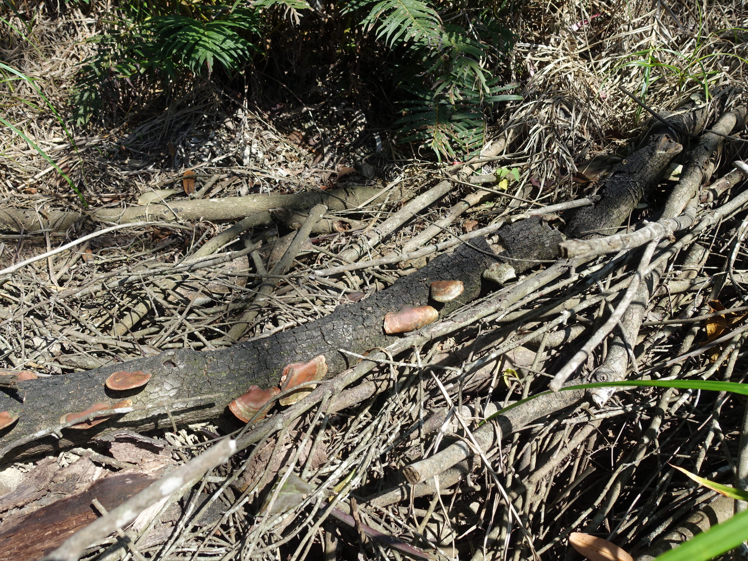 砍下的木頭堆放在造林地周邊,不僅成為真菌生長的棲所,經由細菌或真菌分解之後也能成為土地的養分。