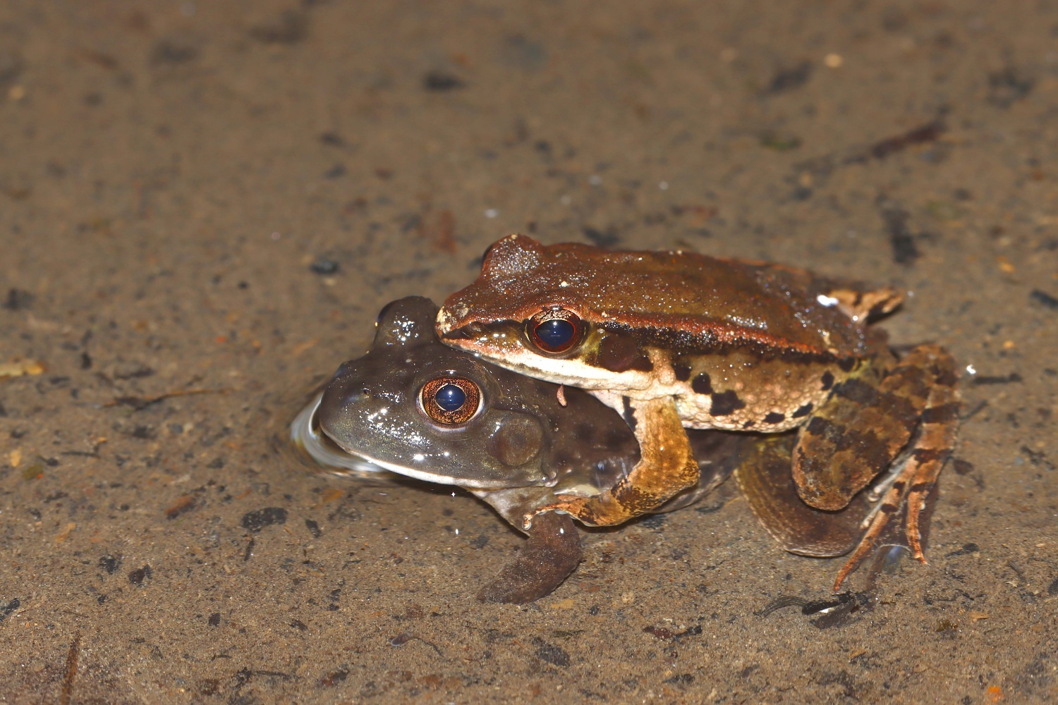 仔細一看,有人抱錯對象了呢!還沒長很大隻的牛蛙被當作拉都希氏赤蛙的雌性個體啦!