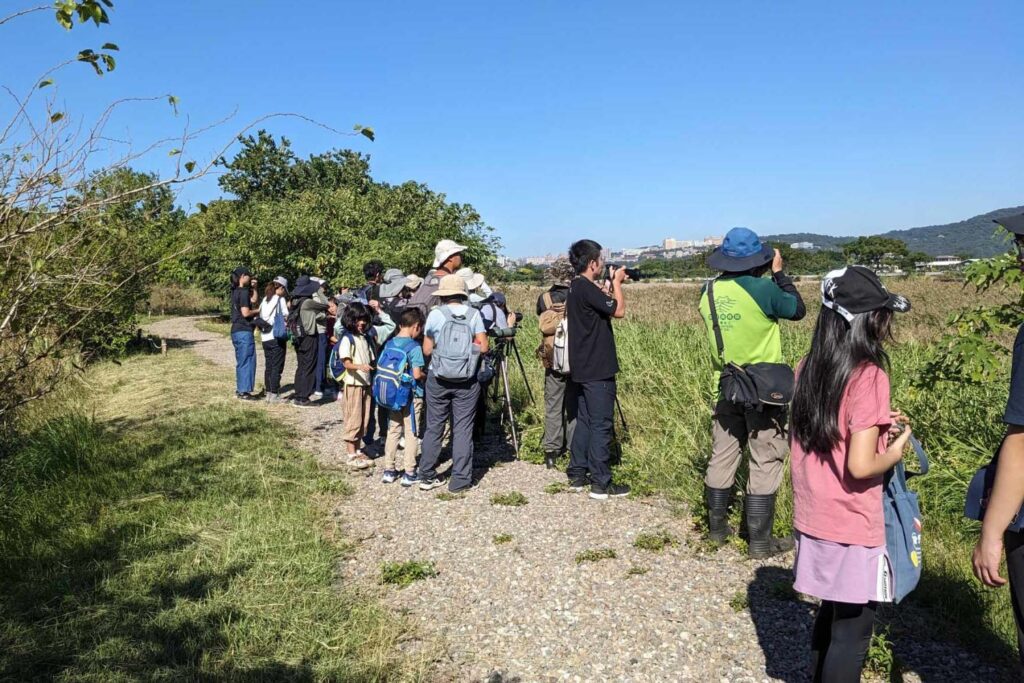 風光明媚的週末早晨,是淡水河流域同步鳥類調查11月的戶外課程,在社子島濕地解說小築集合,總共來了二十多位朋友們一起來,在舒適的秋季涼風中展開。