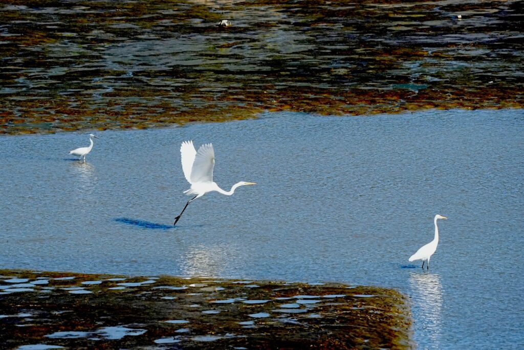 這一天看到的鳥種有:蒼鷺、大、中、小白鷺、夜鷺與牛背鷺;東方環頸鴴、小環頸鴴、太平洋金斑鴴;青足鷸、田鷸、鷹斑鷸、磯鷸與黑腹濱鷸;小水鴨;東方蜂鷹唯一的猛禽;紅冠水雞;珠頸斑鳩、紅鳩;褐頭鷦鶯、灰頭鷦鶯;八哥、白尾八哥、家八哥與黑領椋鳥;大卷尾;翠鳥;灰頭黑臉鵐;麻雀、白頭翁與斯氏繡眼……等等。