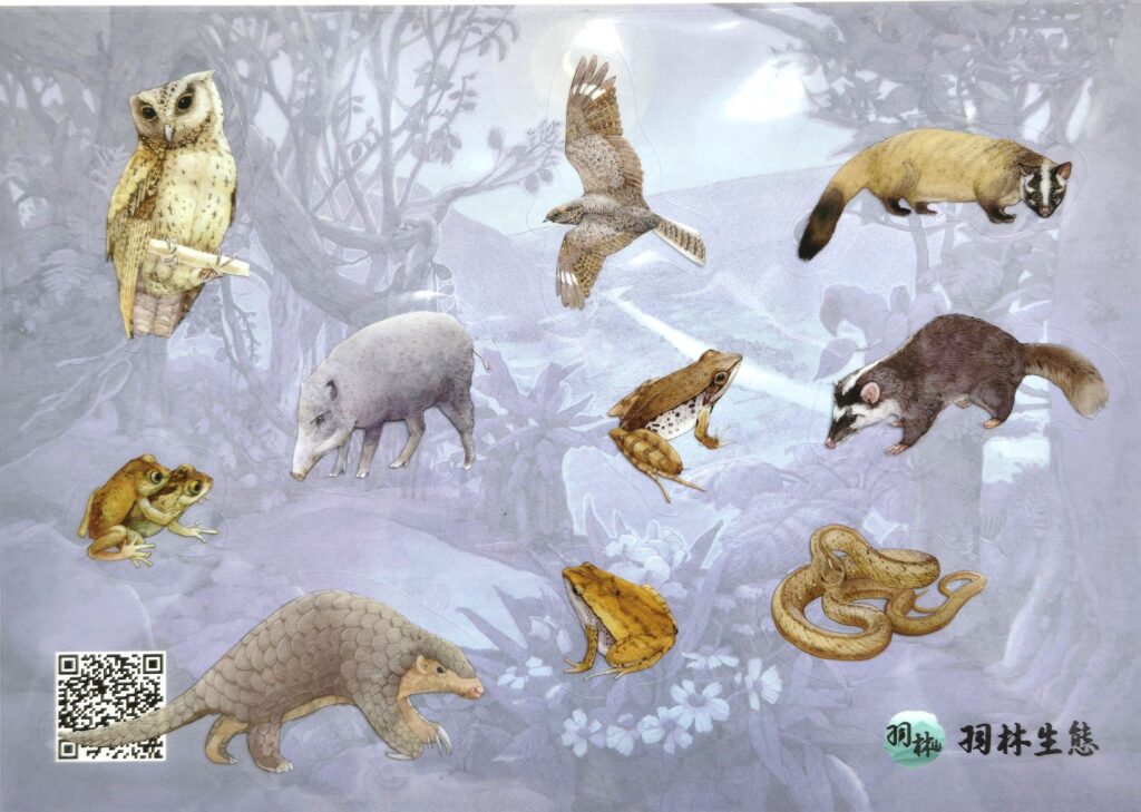 這次同樣有日間與夜間版本,動物的選擇和第一版相同。日間版本我們選擇了善變蜻蜓、白痣珈蟌、異粉蝶、斯氏攀蜥、翠鳥、黑枕藍鶲、臺灣竹雞、大冠鷲、鳳頭蒼鷹、食蟹獴、臺灣獼猴、山羌等12種動物;夜間版本則是選擇了面天樹蛙、黑蒙西氏小雨蛙、腹斑蛙、茶斑蛇、南亞夜鶯、領角鴞、白鼻心、穿山甲、鼬貛、臺灣野豬等10種動物。